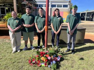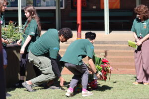 Students created commemorative wreaths that were placed under the flagpoles during the ceremony and then later brought to the Bassendean War Memorial.
